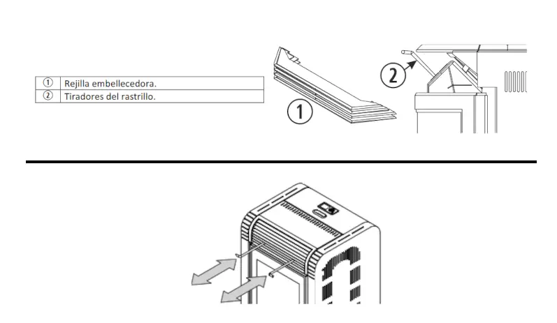 - Nei modelli con scambiatore a tubi (es. Vigo II, Eco I): aziona i tiranti del rastrello con la porta chiusa per far cadere la cenere all’interno del cassetto raccoglicenere.