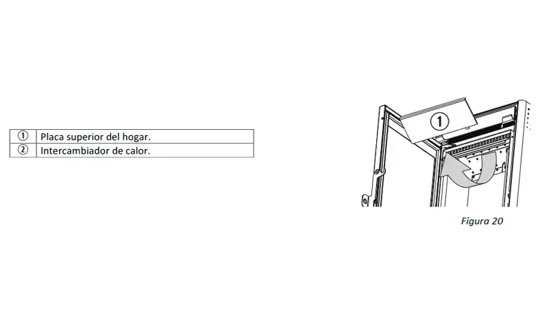 - Nei modelli con deflettore del focolare (es. Vigo III, Creta, Lyon): per accedere allo scambiatore e pulirlo in modo accurato, spingi verso l’alto la piastra superiore del focolare fino a sganciare le linguette che la fissano alla piastra centrale, quindi estraila.