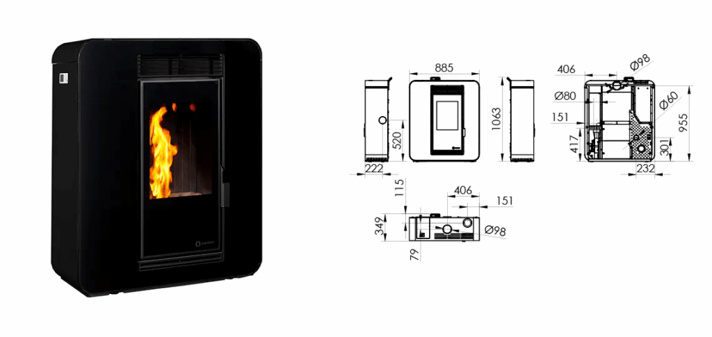 - Design ultracompatto: permette l’installazione in spazi dove altre stufe non entrerebbero.